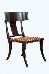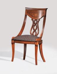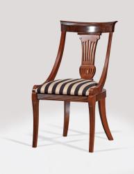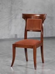 Καρέκλα από ξύλο οξιάς με επένδυση στη πλάτη. Δυνατότητα επιλογής υφασμάτων και λούστρων.