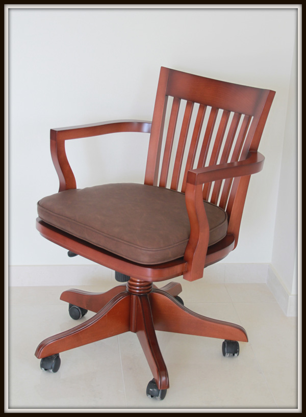 Πολυθρόνα γραφείου από ξύλο οξιάς με μηχανισμό ανάκλισης της πλάτης. Δυνατότητα επιλογής υφασμάτων και λούστρων.