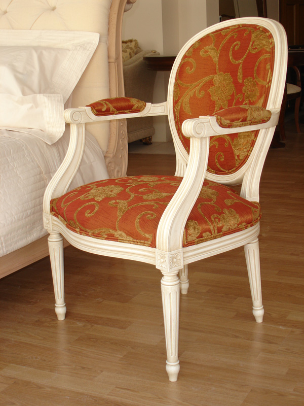 Πολυθρόνα Louis XVI (Λουί Σεζ) από ξύλο οξιάς. Δυνατότητα επιλογής υφασμάτων και λούστρων.