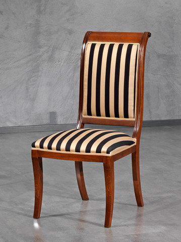 Καρέκλα με υφασμάτινη επένδυση στην πλάτη από ξύλο οξιάς. Δυνατότητα επιλογής υφασμάτων και λούστρων.