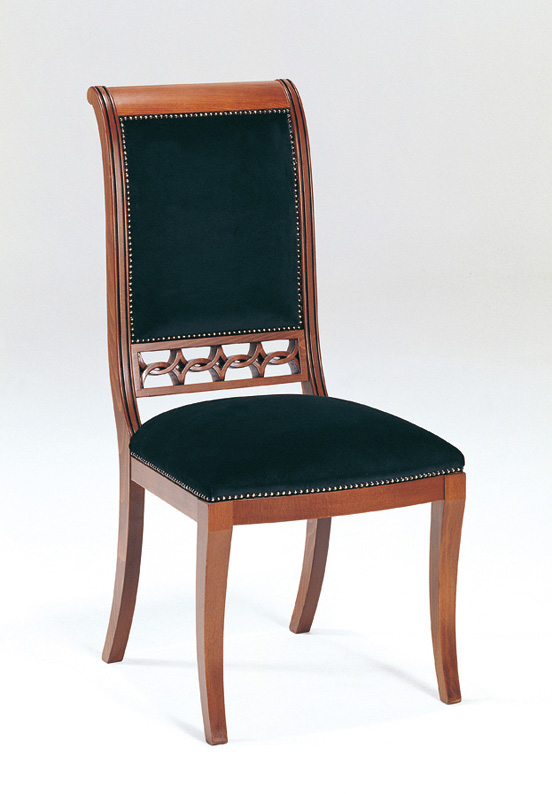Καρέκλα με χειροποίητο σκάλισμα από ξύλο οξιάς. Δυνατότητα επιλογής υφασμάτων και λούστρων.