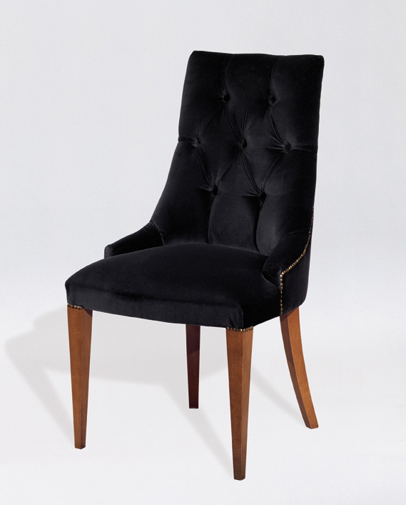 Καρέκλα με καπιτονέ επένδυση στην πλάτη από ξύλο οξιάς. Δυνατότητα επιλογής υφασμάτων και λούστρων.